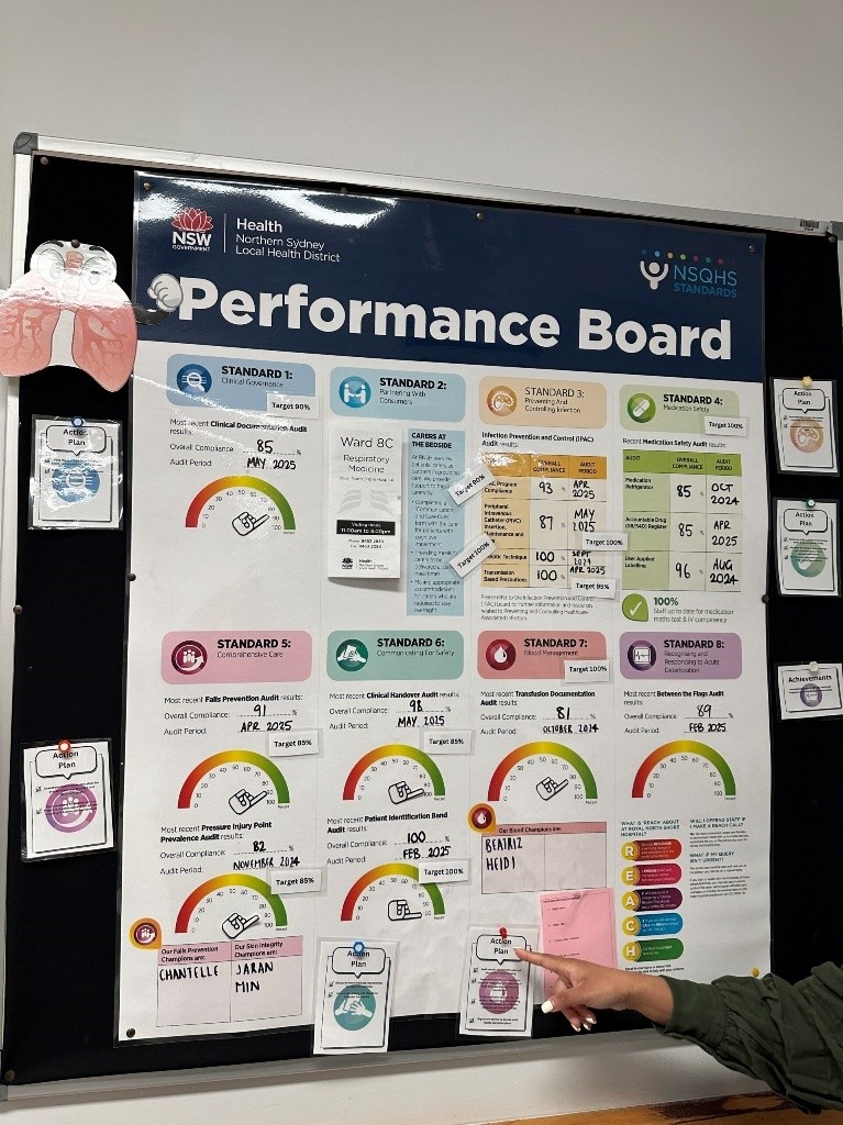 Eriti inspireeriv oli näha igas osakonnas avalikult välja pandud nn Performance Board’i – visuaalset teadetahvlit, kuhu oli koondatud auditi tulemused vastavalt Austraalia NSQHS standarditele. Kui mõnes valdkonnas ilmnesid puudused, oli seal selgelt kirjas konkreetne tegevusplaan ja vastutaja nimi. Selline läbipaistev ja kaasav lähenemine loob ühise arusaama eesmärkidest ning motiveerib meeskondi aktiivselt kvaliteeti parandama. See näide jäi eredalt meelde kui hea praktika, mida võiks rakendada ka Eestis.
