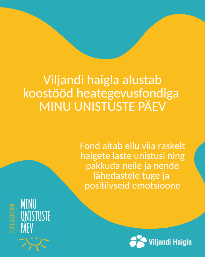 Viljandi haigla sõlmis koostöölepingu heategevusfondiga Minu Unistuste Päev, et aidata ellu viia raskelt haigete laste unistusi ning pakkuda neile ja nende lähedastele tuge ja positiivseid emotsioone.