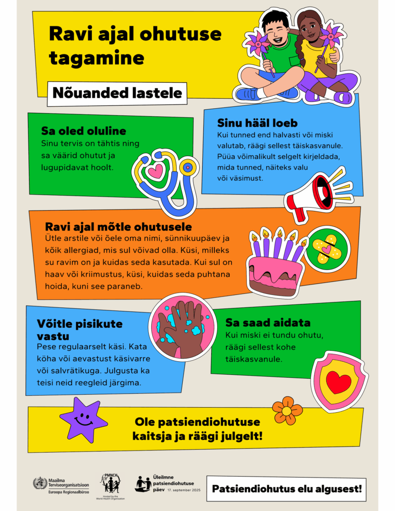 17. septembril tähistatakse rahvusvaheliselt patsiendiohutuse päeva, mille eesmärk on tõsta teadlikkust patsiendiohutusest. Selle aasta sõnum on “Patsiendiohutus elu algusest!” ning fookuses on vastsündinute ja laste ohutus tervishoius.